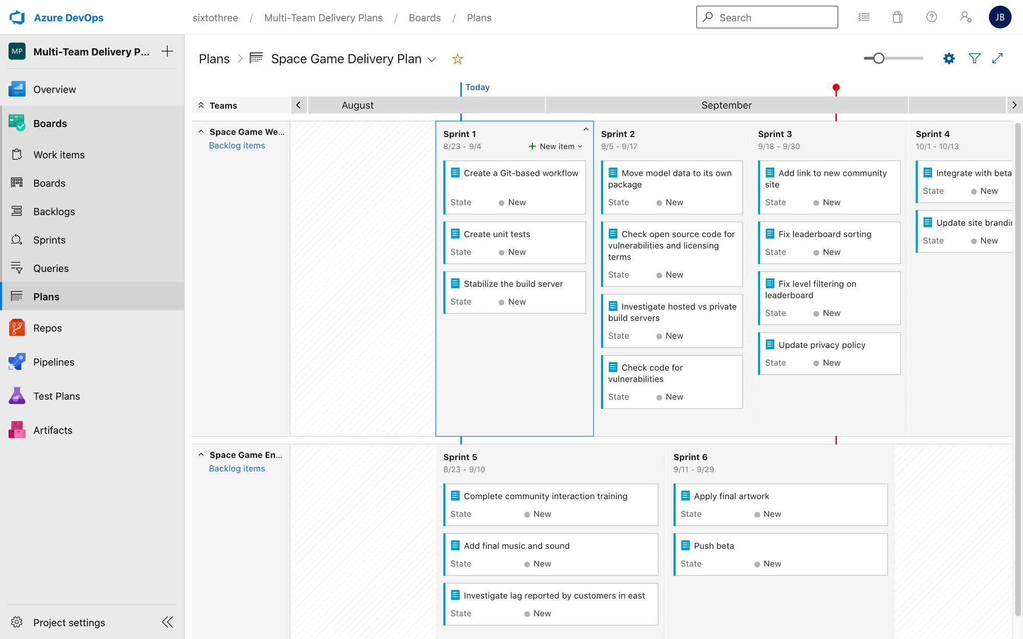 If you need to setup a demo project with example stories, visit the Azure DevOps Demo Generator. You'll choose the template under Microsoft Learn and Manage Agile software delivery plans across teams.