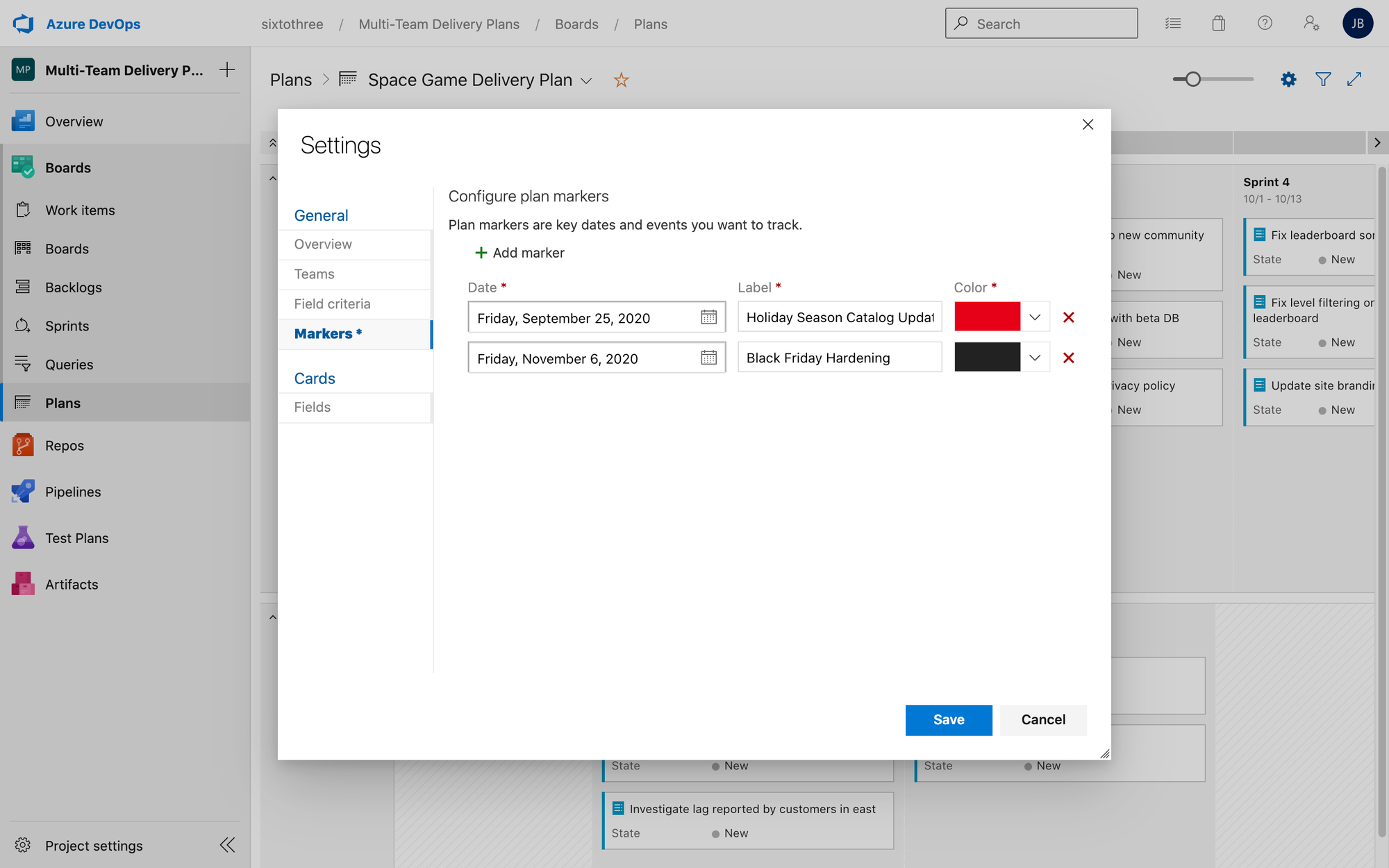 Azure DevOps has some great features that can help you manage program or product development across teams. Delivery Plans is a Visual Studio Marketplace extension that helps teams align work by presenting a summary of the work being completed against an iteration based calendar.