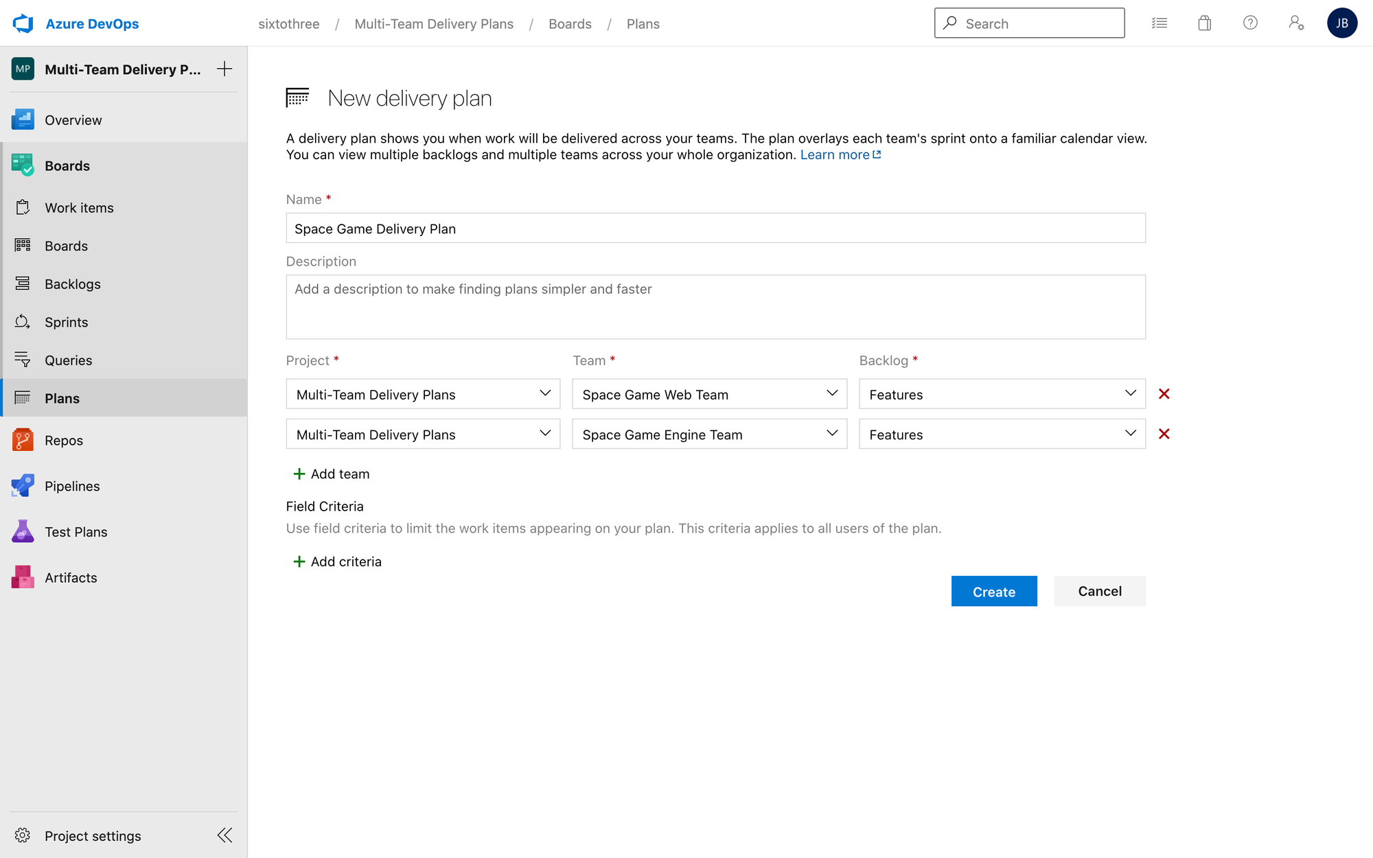 To get started with this feature, make sure you install the Delivery Plans extension. Your account or groups will need the proper permissions. You'll see a new area under Boards called Plans.